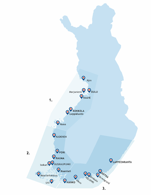 Luotsiasemien lisäksi Finnpilotin palvelutason turvaa 13 tukiasemaa, jotka ovat miehitettyinä tarvittaessa.